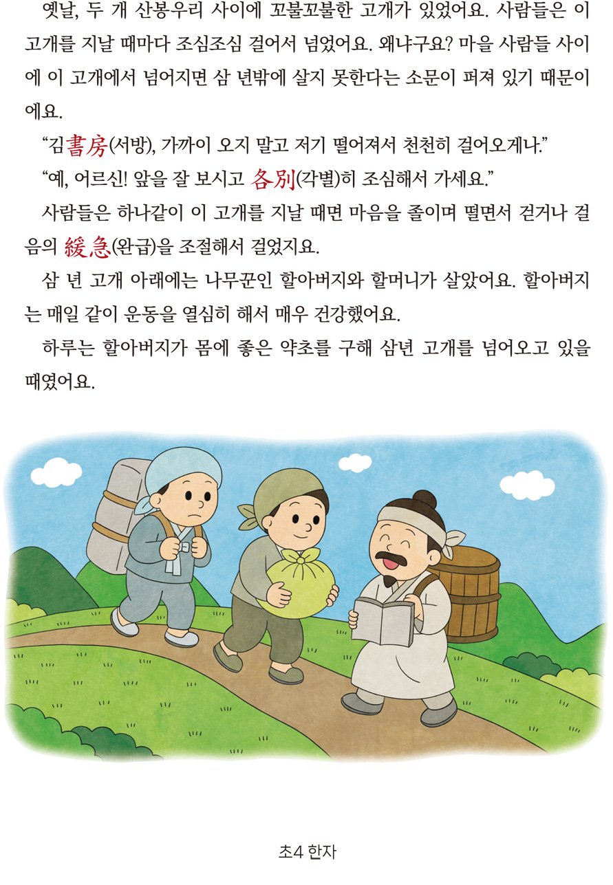 초4 한자 전래 동화 4단원 ④ 장수 고개가 된 삼 년 고개