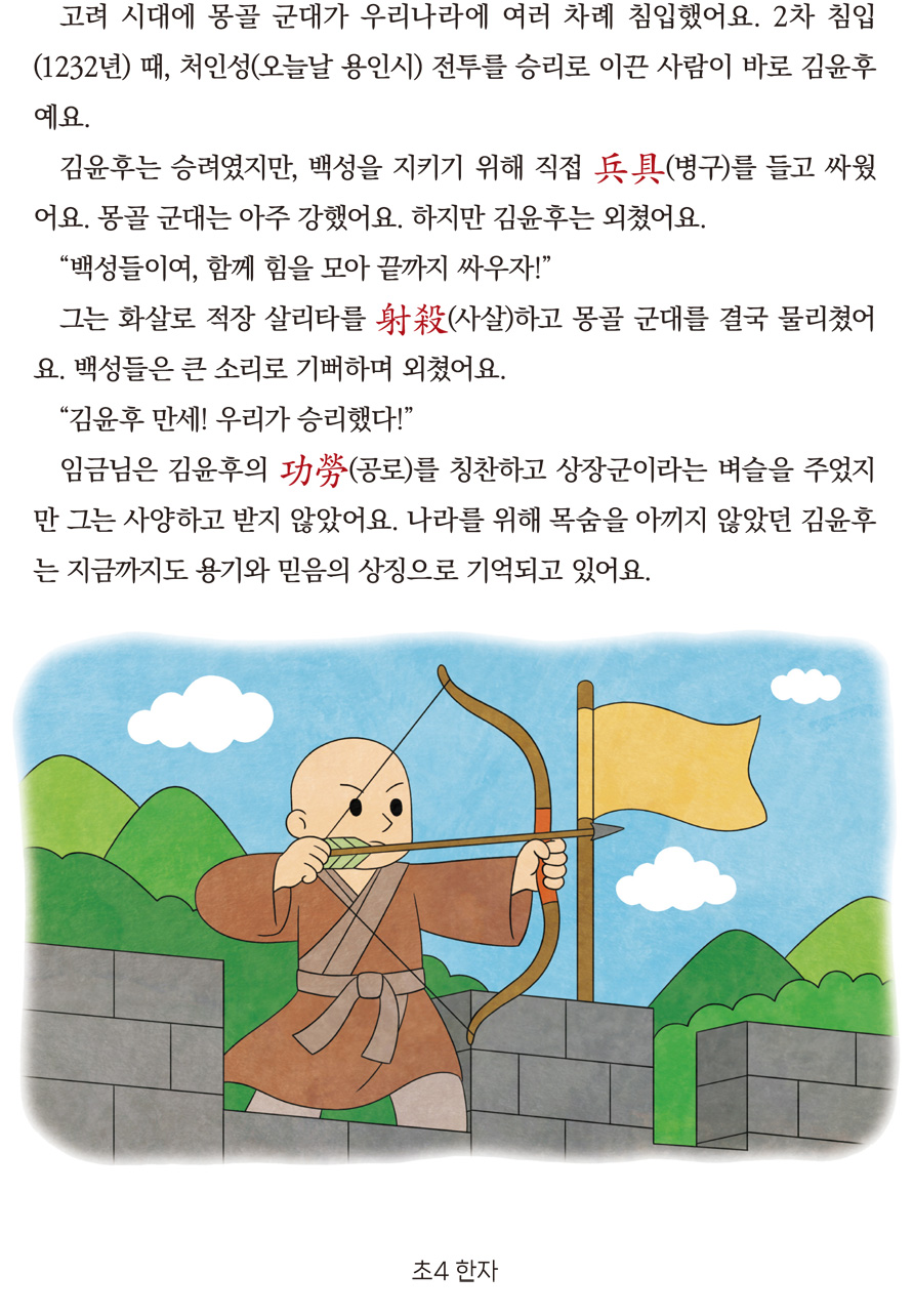 초4 한자 위인전기 5단원 ① 몽골을 물리친 김윤후