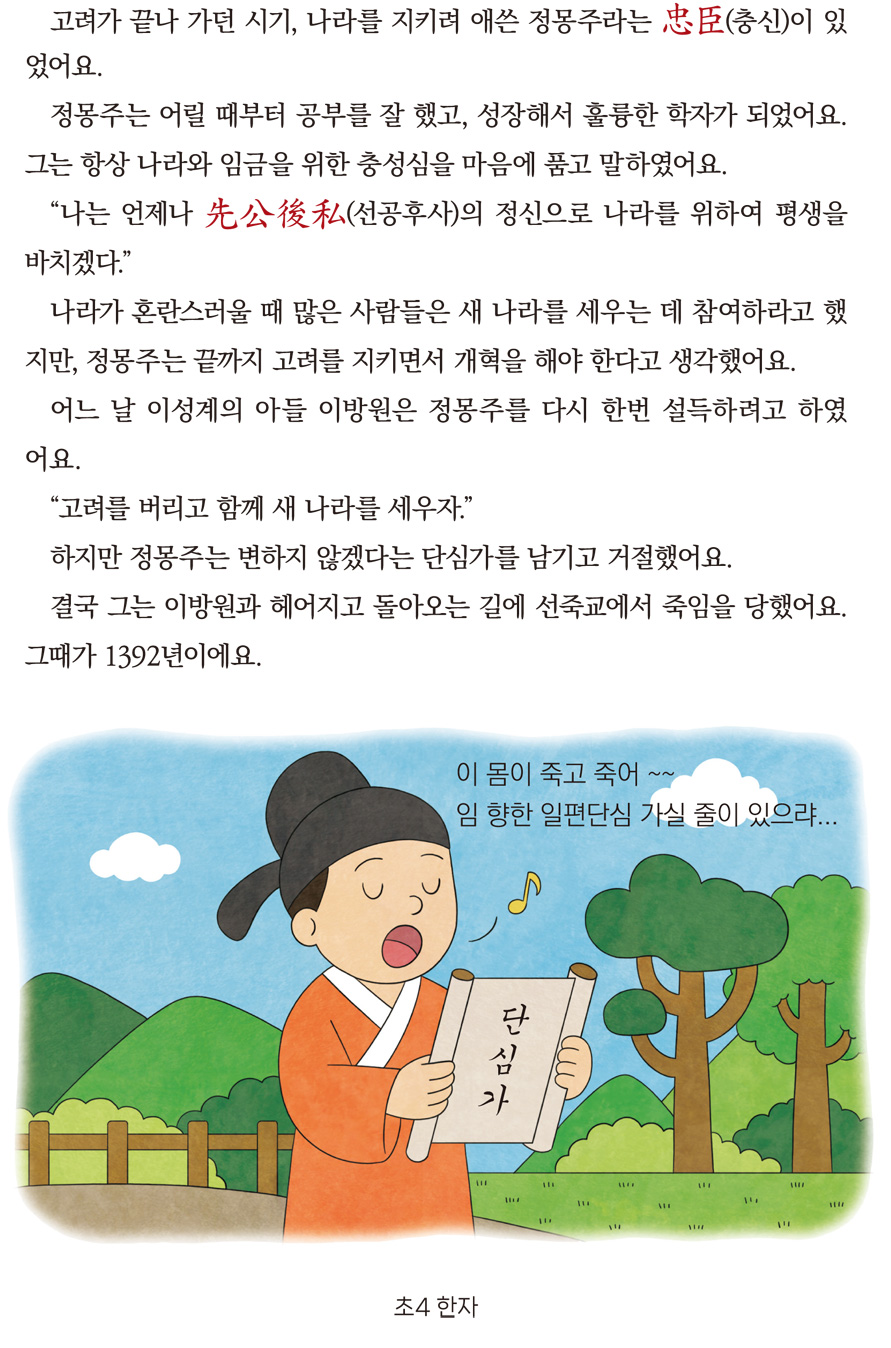 초4 한자 위인전기 5단원 ④ 이 몸이 죽고 죽어, 정몽주