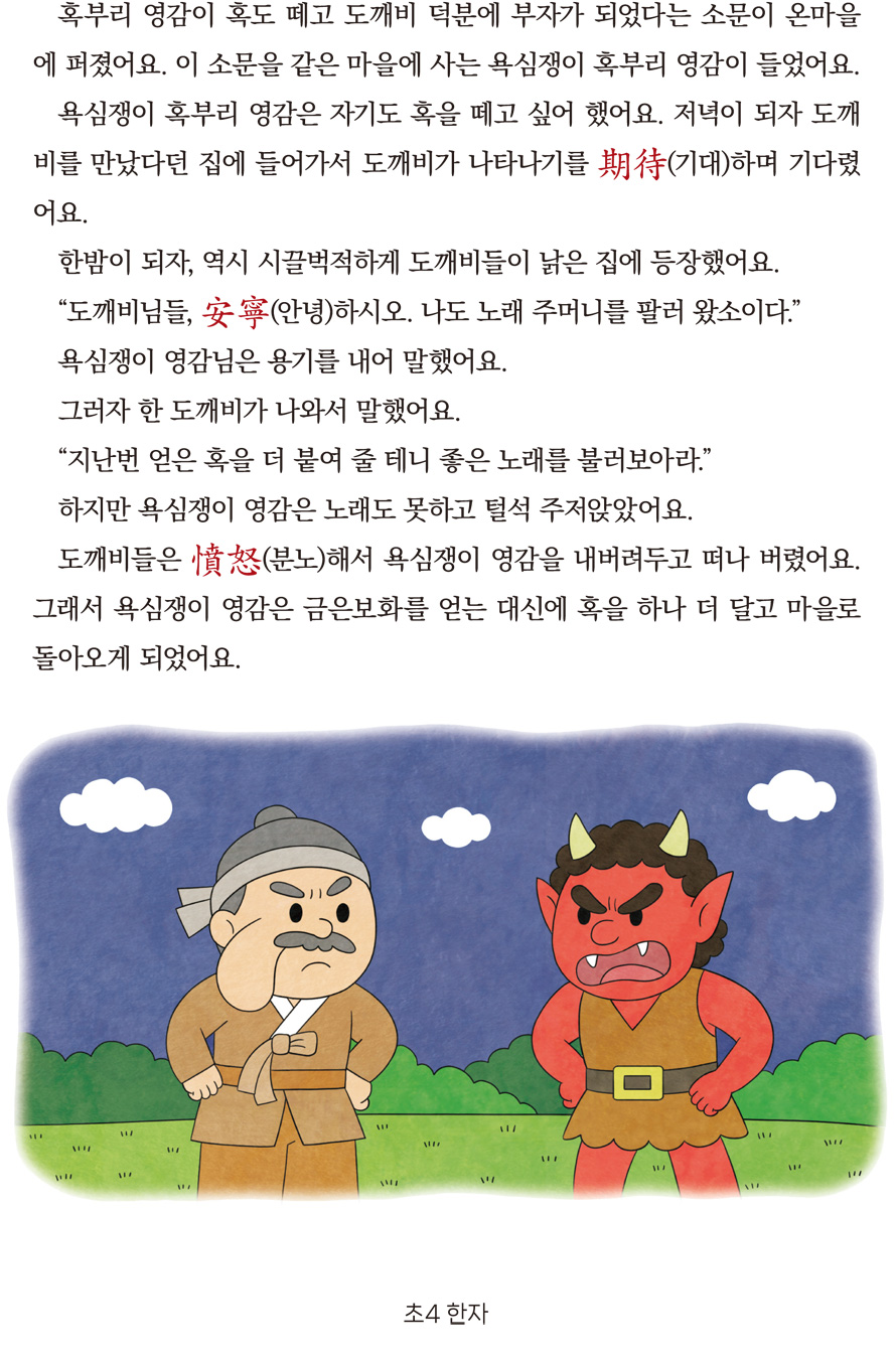초4 한자 전래 동화 6단원 ④ 욕심쟁이 영감과 도깨비의 분노