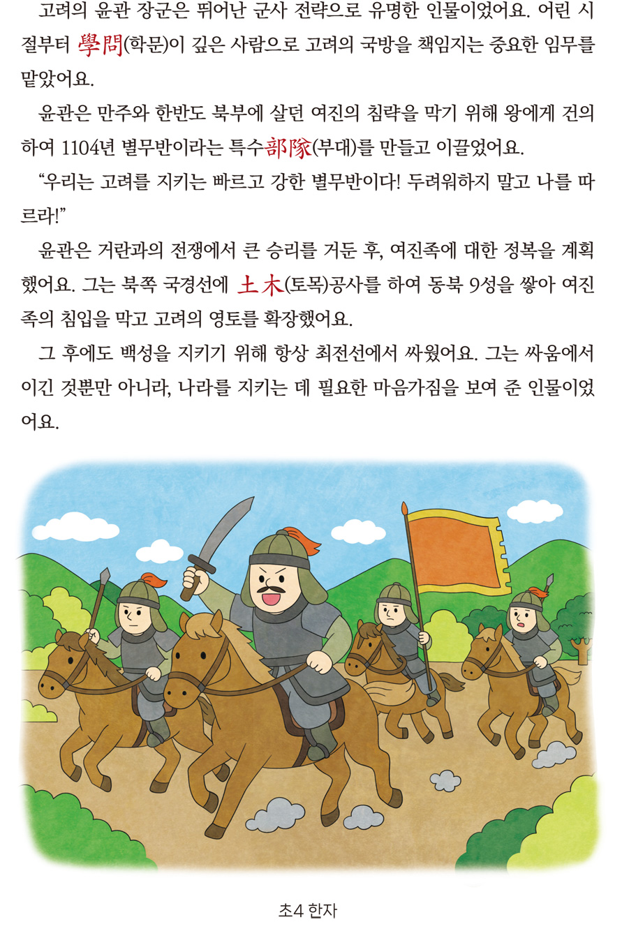 초4 한자 위인전기 3단원 ④ 동북 9성을 세운 윤관