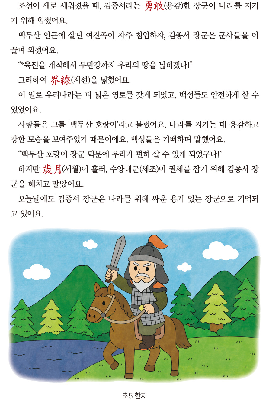 초5 한자 위인전기 2단원 ④ 백두산 호랑이 김종서