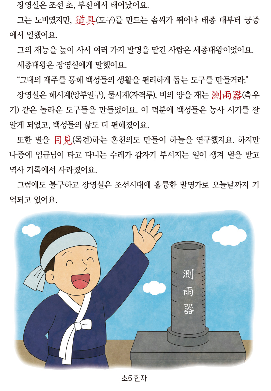초5 한자 위인전기 4단원 ① 조선 시대 발명가 장영실