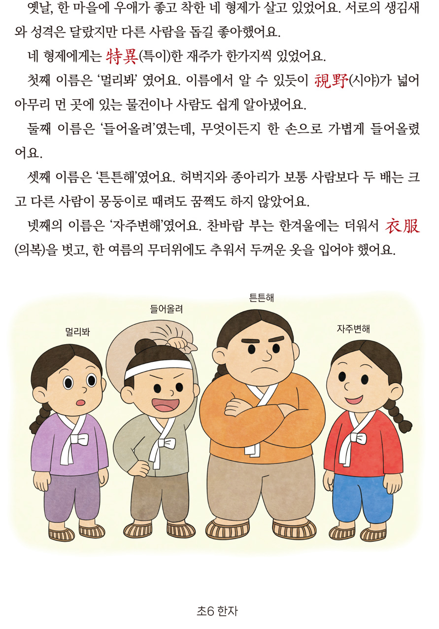 초6 한자 전래 동화 3단원 ① 재주가 특이한 네 형제